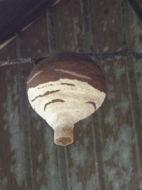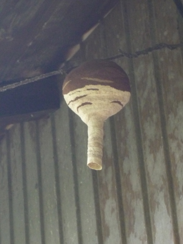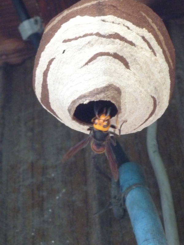 わが家のハチの巣 09/06/201210/06/2012 日々 五日前にハチの巣が手を伸ばせば届くようなテラスの軒先にできはじめた。 白熱灯の笠のようなのが珍しくてほっておいたら、見慣れたハチの巣の六角形は丸い玉のなかに姿を消していた。 そして、おちょぼ口のようなのがどんどん伸びていった。 造形の妙にと創造の努力に敬意を表して、壊さずにいるけれど、スズメバチらしい。 写真にいるのは、女王蜂だそうだ。 女王蜂一匹で作り始めるのだという。 刺されるのはおそろしいし、はて、いつまでながめていようか。 五日前 昨日の早朝 昨日の朝 昨日の午後 今朝 ☆ Facebook で共有するにはクリックしてください (新しいウィンドウで開きます) Facebook クリックして X で共有 (新しいウィンドウで開きます) X その他 クリックして友達にメールでリンクを送信 (新しいウィンドウで開きます) メールアドレス クリックして Tumblr で共有 (新しいウィンドウで開きます) Tumblr