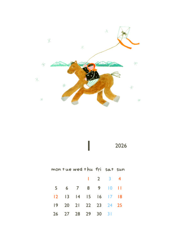 「2026年のこよみ」ができました 15/10/202516/10/2025 展示会 2026年は午です。活発、躍動する年になりなるでしょうか。どの月にもウマが描かれています。ドンとウマーな月もありますが、ひっそりとひそんでいるウマもいます。どこにかくれているのか探すのも楽しみなカレンダーです。 カレンダー取扱店 長野市ソノマノオーロラキッチンリゼットマゼコゼえんがわch.booksnanoa ノーノ分室喫茶 sirafu光風舎カフェ日々 松本市ギャルリ灰月リフレクソロジー なつのひ 長野県坂城町山小路 上田市Kibi craftNAGMO DONUTS 浦安市どんぐりころころ 鳥取市森の生活者 鳥取市用瀬町takemuratei 鳥取県若桜町Gallery cafe ふく 鳥取県湯梨浜町東郷たみ 京都市KUN KUN LU HO【クンクンルーホー】 和歌山市エムズギャラリー12番丁 西宮市siro 兵庫県加古郡稲美町てしごと 日日 岡山市アートスペース油亀 高知市おうちスペース i こちらのネットショップでも購入できます。 https://maet.base.shop/items/120104754 ☆ Facebook で共有するにはクリックしてください (新しいウィンドウで開きます) Facebook クリックして X で共有 (新しいウィンドウで開きます) X その他 クリックして友達にメールでリンクを送信 (新しいウィンドウで開きます) メールアドレス クリックして Tumblr で共有 (新しいウィンドウで開きます) Tumblr